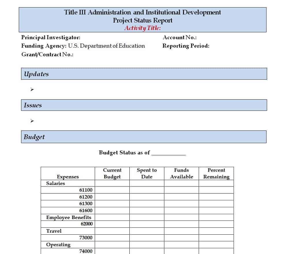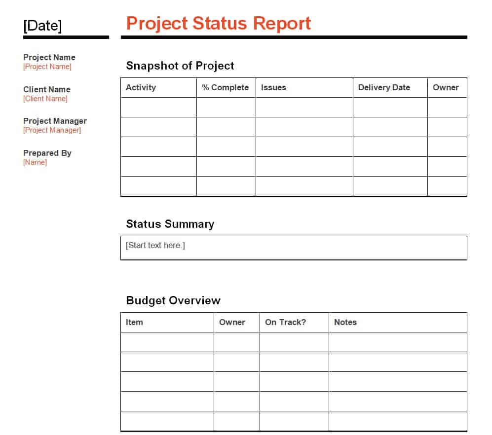 Sample Project Status Report Template