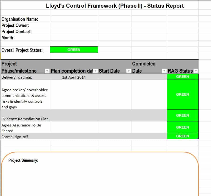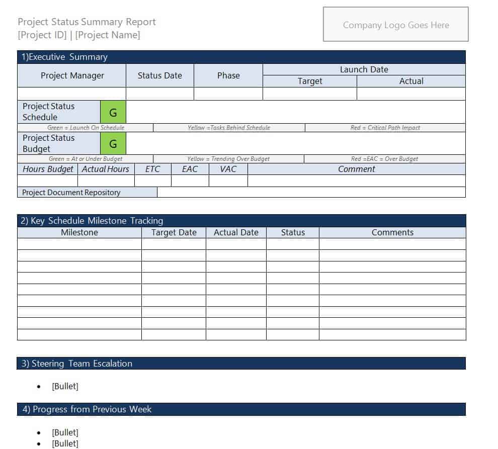 Project Status Summary Report Template