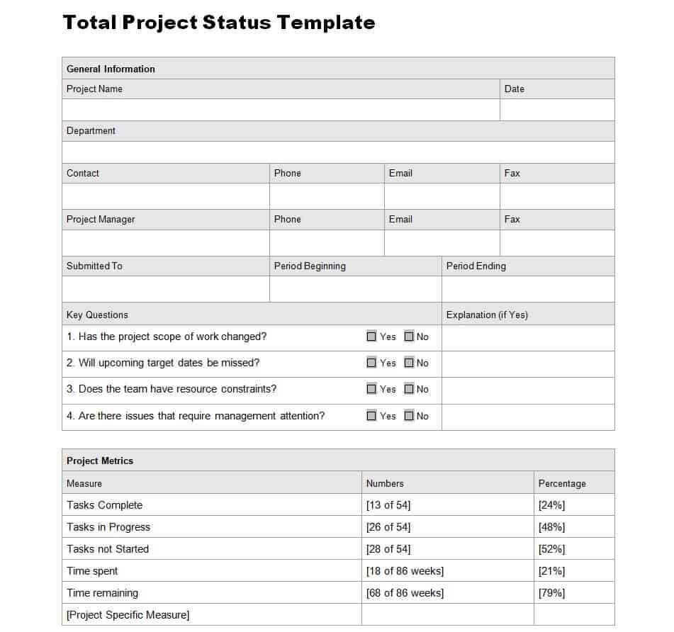 Total Project Status Report Template WORD