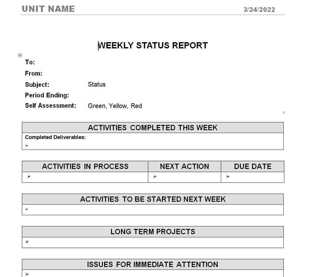 Weekly Status Report Sample Template