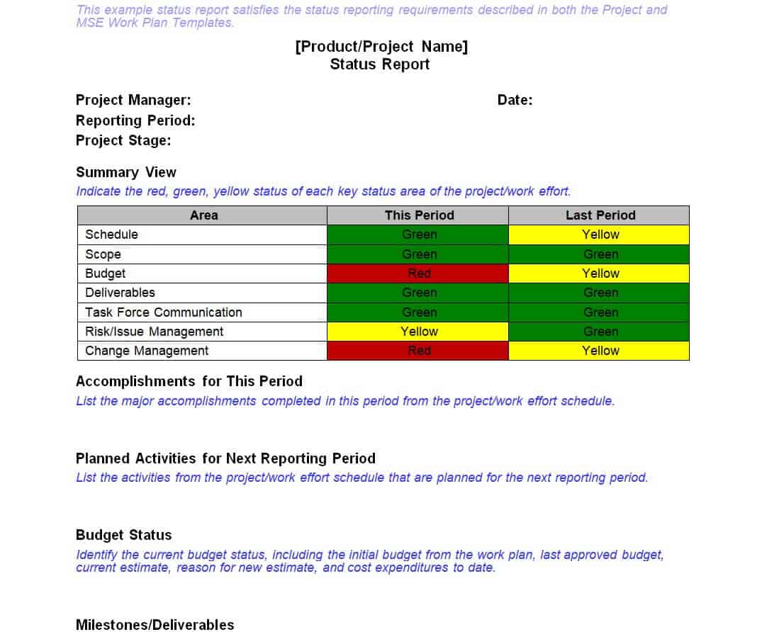 Example Product / Project Status Report Template