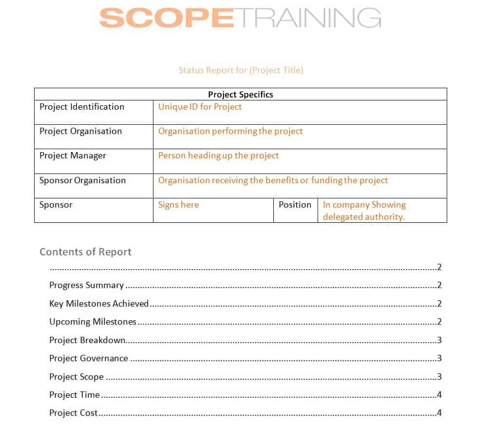 Editable Project Status Report Template