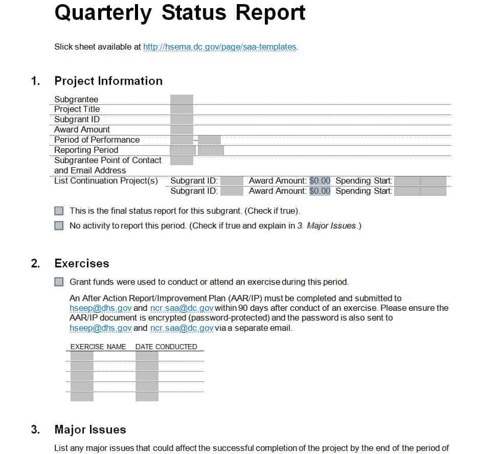 Quarterly Project Status Report Template Printable