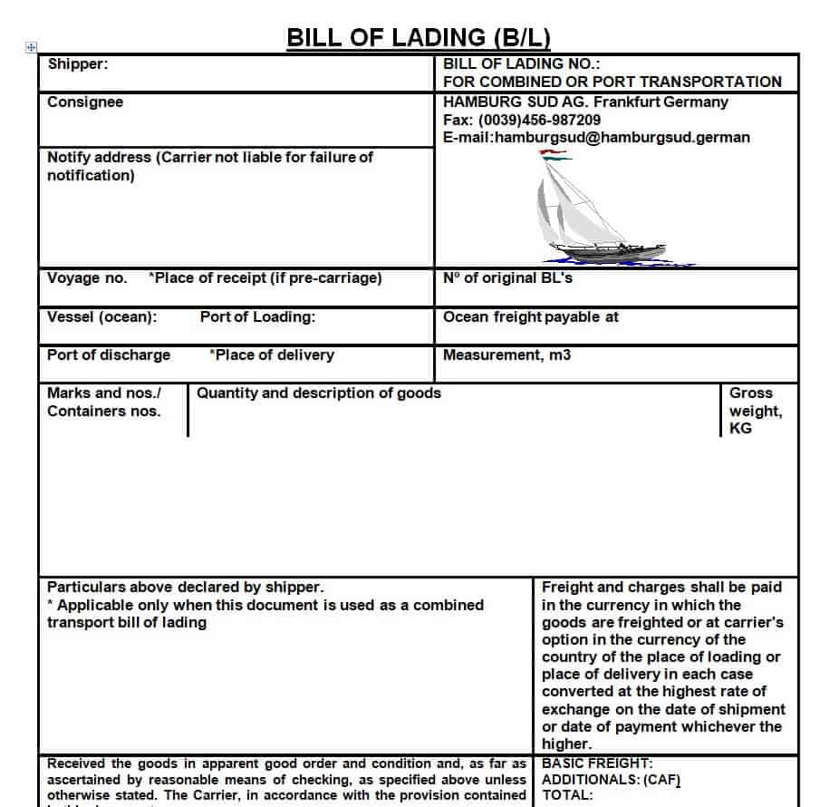 Blank Bill of Lading Template in DOC Format