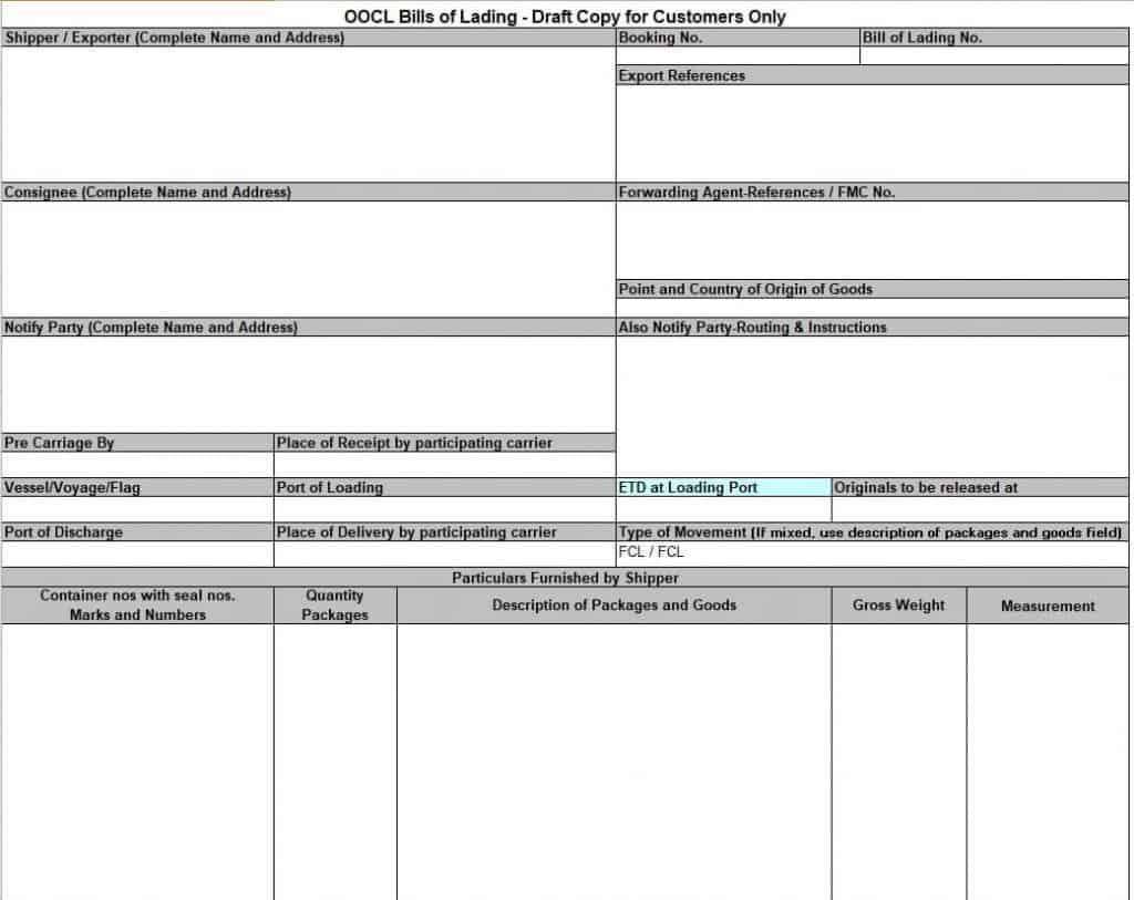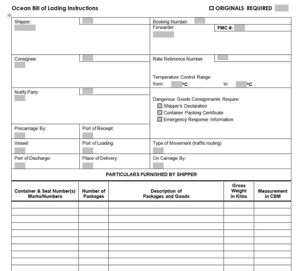 Ocean Bill of Lading Template with Instructions