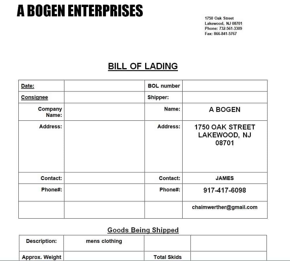 Enterprise’s Bill of Lading Template