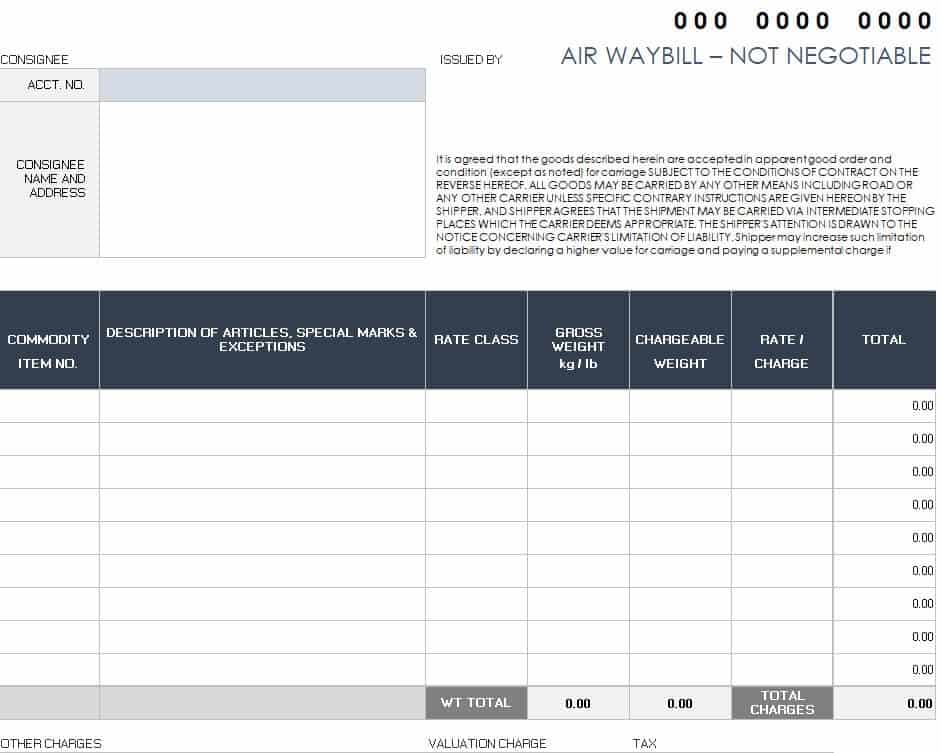Non Negotiable Air Bill of Lading Template
